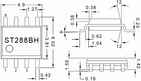 1. 以雙光束直射取樣式光電傳感器作為ST288A輸入信號(hào)取樣時(shí),取 樣物體的齒寬和齒間距必須大于光電傳感器雙光束間的間距;同樣 以反射式光電傳感器作為ST288A輸入信號(hào)取樣時(shí),取樣的暗標(biāo)志 與亮標(biāo)志的寬度必須大于兩反射式光電傳感器光束的間距,確保采 樣脈沖信號(hào)的可靠性,防止誤發(fā)脈沖信號(hào)。 2. 脈沖輸出寬出廠前可選擇,但出廠后不可更改。 3. 正方向脈沖輸出信號(hào)與反方向脈沖輸出信號(hào)沒有嚴(yán)格的定義,是相 對(duì)于ST288A輸入端2腳4腳信號(hào)的先后而言,應(yīng)用中根據(jù)實(shí)際情況選擇。 4. 工業(yè)級(jí)的芯片型號(hào)為ST288B、ST289B。工作環(huán)境溫度-40~85℃。 5. 新款ST288BH、ST289BH×2、ST289BH×4建議選用SN封裝。 |