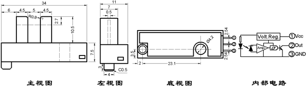 ● 光縫寬度:0.5mm;光軸中心:2.7mm。