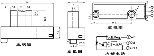 ● 光縫寬度:0.5mm;光軸中心:2.3mm。