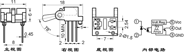 一、特點: ● 單光束施密特三極管集電極開路輸出 ● 自帶搖臂遮光片。 ● IT133H 為通光高電平輸出, IT133L 為通光低電平輸出。