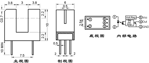 一、特點: ● 單光束施密特三極管集電極開路輸出 ● 光縫寬度(分辨率):0.6mm;光軸中心:2.2mm。 ● IT136H 為通光高電平輸出, IT136L 為通光低電平輸出。