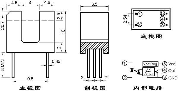 一、特點: ● 單光束施密特三極管集電極開路輸出 ● 防塵結(jié)構(gòu)設(shè)計。 ● 光縫寬度(分辨率):0.5mm;光軸中心:2.5mm。 ● IT140FA-H 為通光高電平輸出, IT140FA-L 為通光低電平輸出。