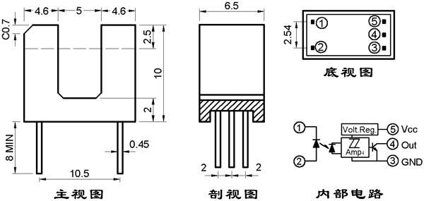 一、特點(diǎn): ● 單光束施密特三極管集電極開路輸出 ● 防塵結(jié)構(gòu)設(shè)計(jì)。 ● 光縫寬度(分辨率):0.5mm;光軸中心:2.5mm。 ● IT150FA-H 為通光高電平輸出, IT150FA-L 為通光低電平輸出。