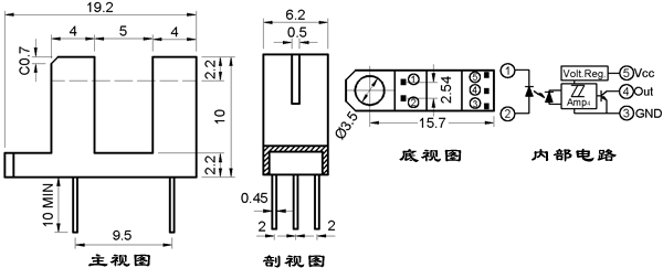 ● 光縫寬度(分辨率):0.5mm;光軸中心:2.2mm。