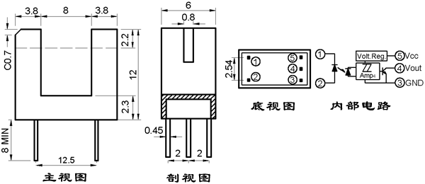 ● 光縫寬度(分辨率):0.8mm;光軸中心:2.2mm。