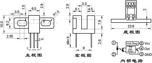 ● 光縫寬度(分辨率):0.5mm;光軸中心:2.9mm。