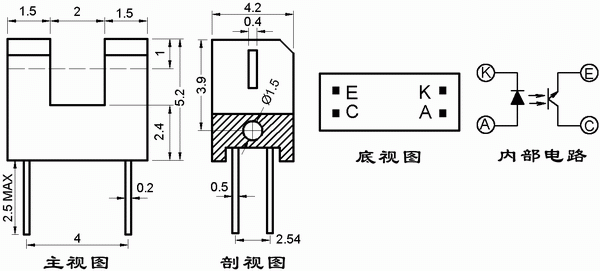 ● 光縫寬度:0.4mm;光軸中心:1mm。