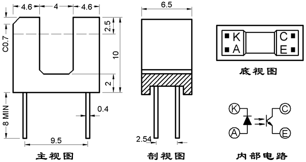 ● 光縫寬度:0.5mm;光軸中心:2.5mm。