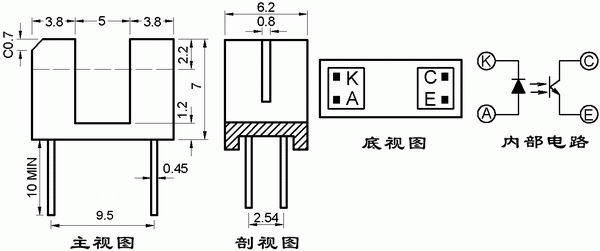 ● 光縫寬度:0.8mm;光軸中心:2.2mm。