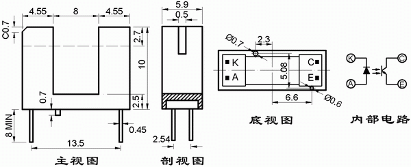 ● 光縫寬度:0.5mm;光軸中心:2.7mm。