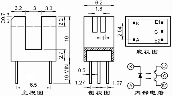高靈敏度雙光電晶體管組成。