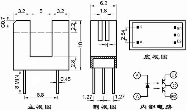 高靈敏度雙光電晶體管組成。