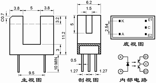 高靈敏度雙光電晶體管組成。